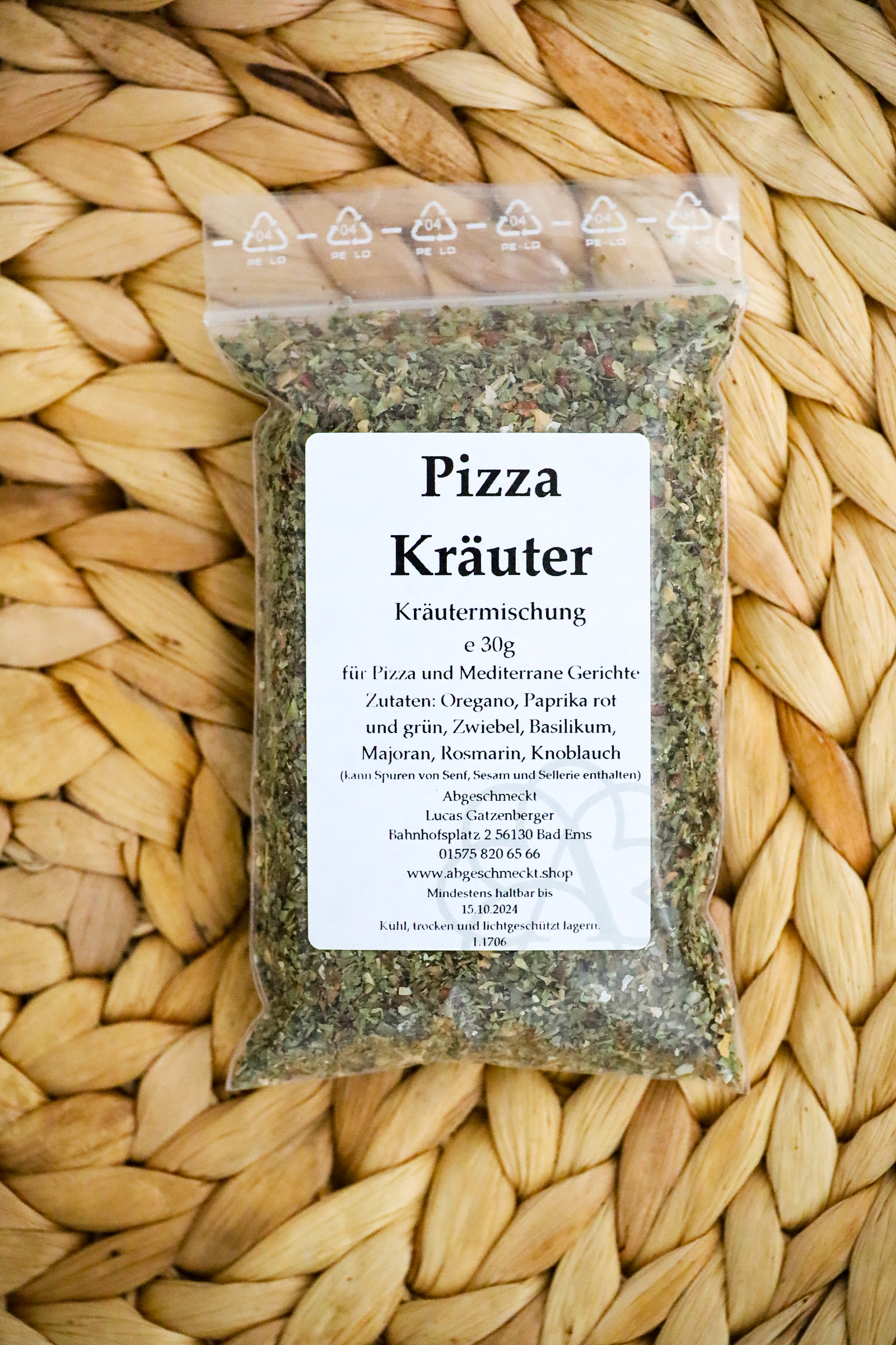 Unsere Pizzakräuter werden sorgfältig ausgewählt und stammen aus kontrolliertem Anbau. Die Mischung wird von uns in Handarbeit zusammengestellt und in einer aromaschonenden Verpackung geliefert.